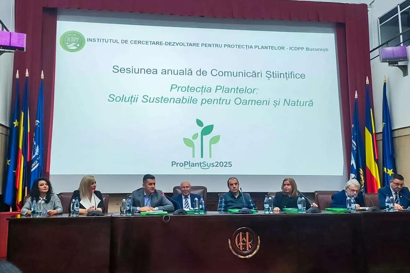 🔬 Autoritatea Națională Fitosanitară a participat azi, 26 noiembrie 2025 la Sesiunea de Comunicări Științifice „ProPlantSus2025”, organizată de Institutul de Cercetare-Dezvoltare pentru Protecția Plantelor, în Aula Magna a ASAS „Gheorghe Ionescu-Șișești” din București. 🌱🔬